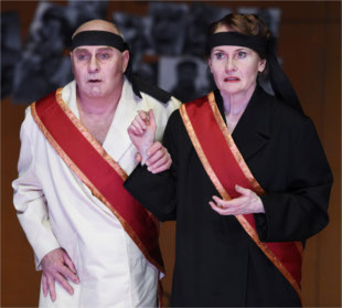 Dem ältesten Theaterstück der Welt nahm sich Hansgünther Heyme im Stadttheater Ingolstadt an. In Aischylos' Werk wird über die Niederlage der Perser bei Salamis gegen die Griechen berichtet. Ein zeitloses Stück, das in seiner Sprachgewalt und seiner thematischen Aktualität immer noch starke Eindrücke zu hinterlassen vermag. Dietrich Ebeners kongeniale Übersetzung (1 D | 3 H, Chor und Gefolge) trägt dazu ihren Teil bei, da sie im Klassiker angenehm unverschnörkelt den richtigen Ton trifft.