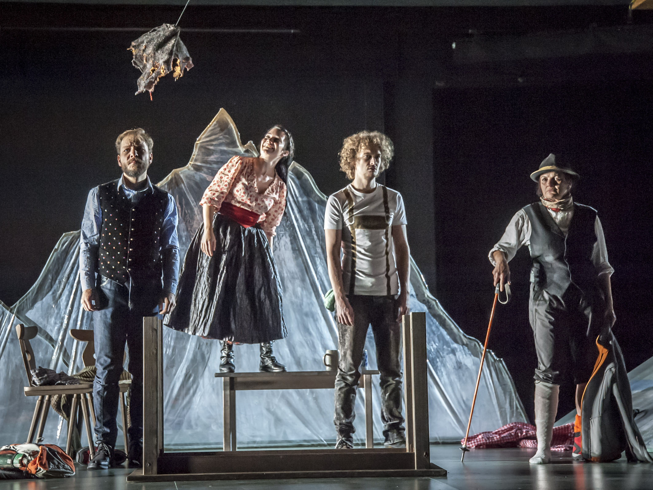 Rebecca Lang und Johanna Wehners Fassung des Geier-Wally-Stoffs von Wilhelmine von Hillern ist an den Kammerspielen in Innsbruck kongenial auf die Bühne gebracht worden. Thomas Krauß führte Regie, für Bühne und Kostüme sorgte Ursula Beutler.
