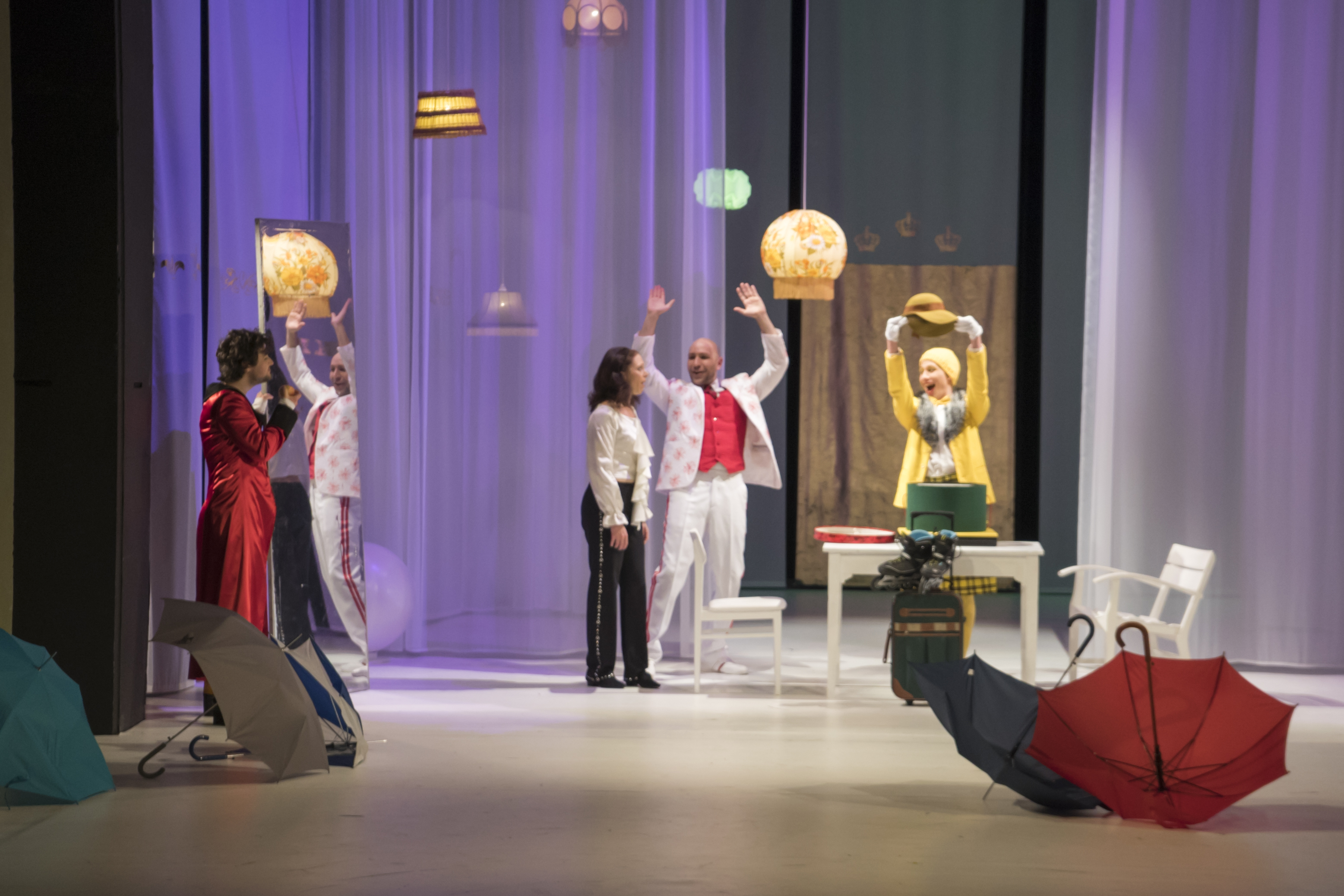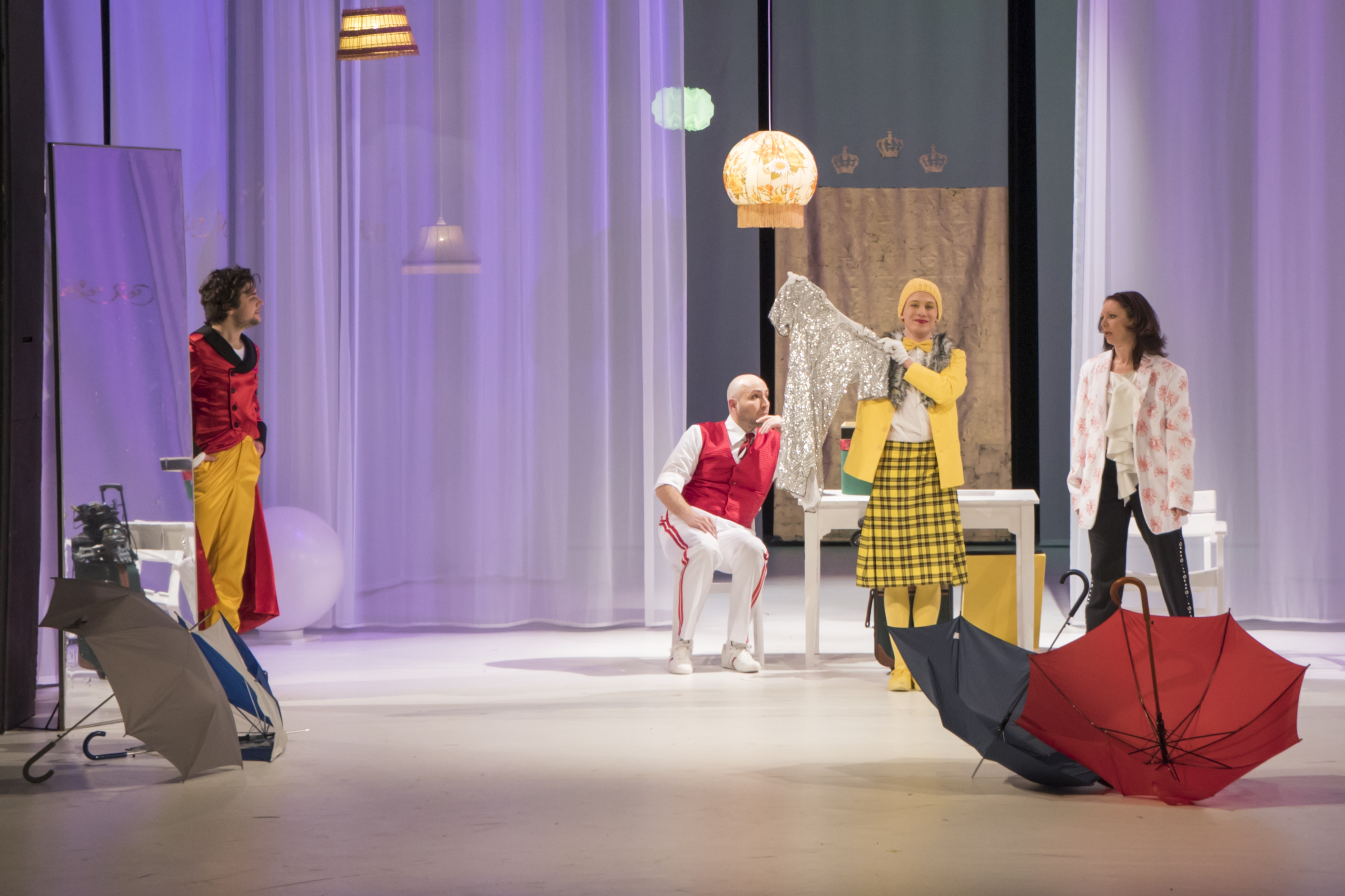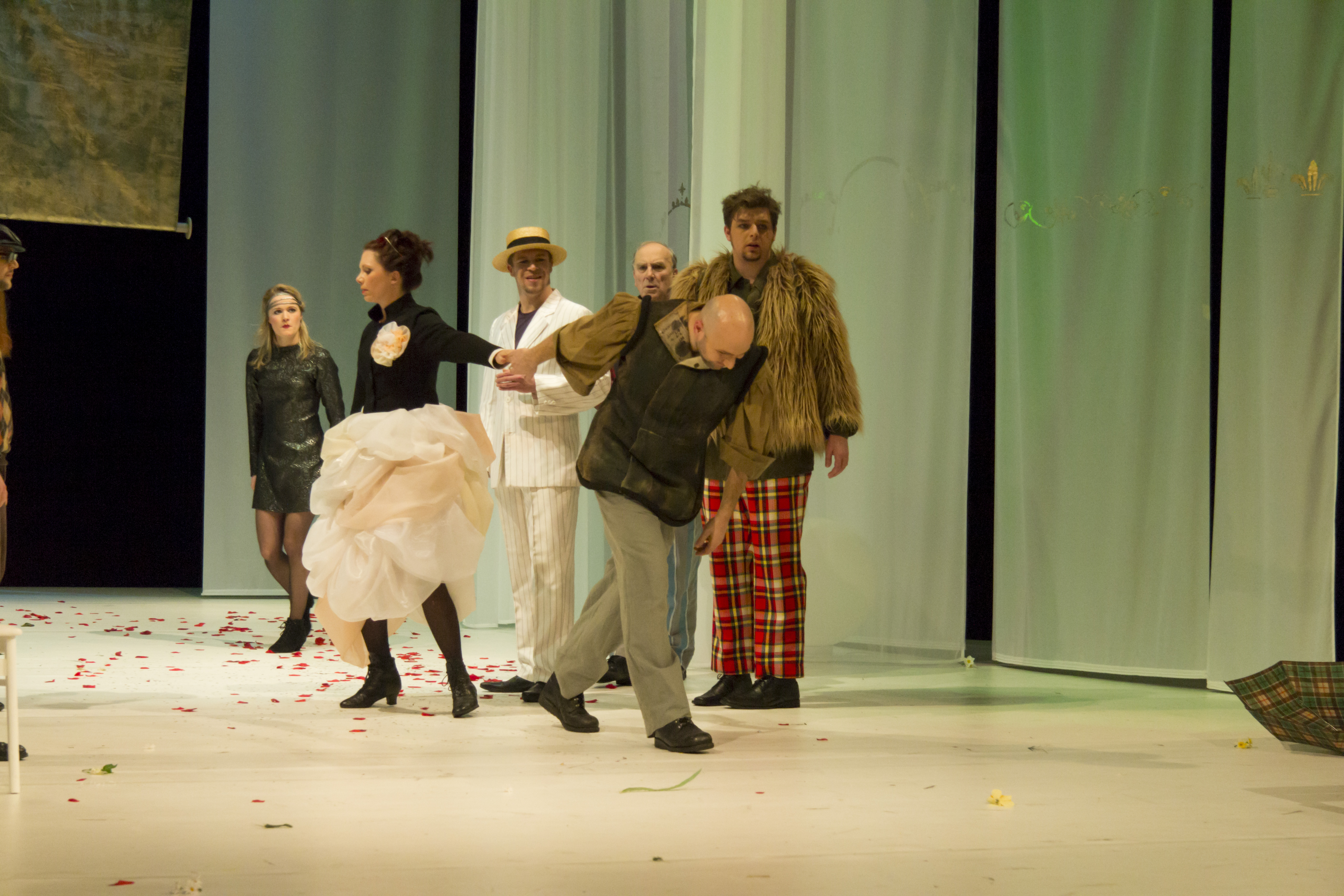 Am 7. Februar feierte die Inszenierung des Shakespeare-Werkes DER WIDERSPENSTIGEN ZÄHMUNG (3 D | 14 H, kl. Rollen) in der Übersetzung von Hermann Motschach im Eduard-von-Winterstein-Theater Premiere. Regie führte Tamara Korber. Für die quietschbunte und fantasievolle Ausstattung sorgte Peter Gross. Der Inhalt des wilden Spiels über die Liebe ist, nicht zuletzt aus zahlreichen Adaptionen für Film und Fernsehen, wohlbekannt: Bianca, die Tochter des reichen Battista Minola, will heiraten. Allerdings darf sie das erst, wenn auch ihre ältere Schwester einen Ehemann findet. Und das – so stellt sich heraus – ist bei der widerspenstigen Caterina schwerer als gedacht.