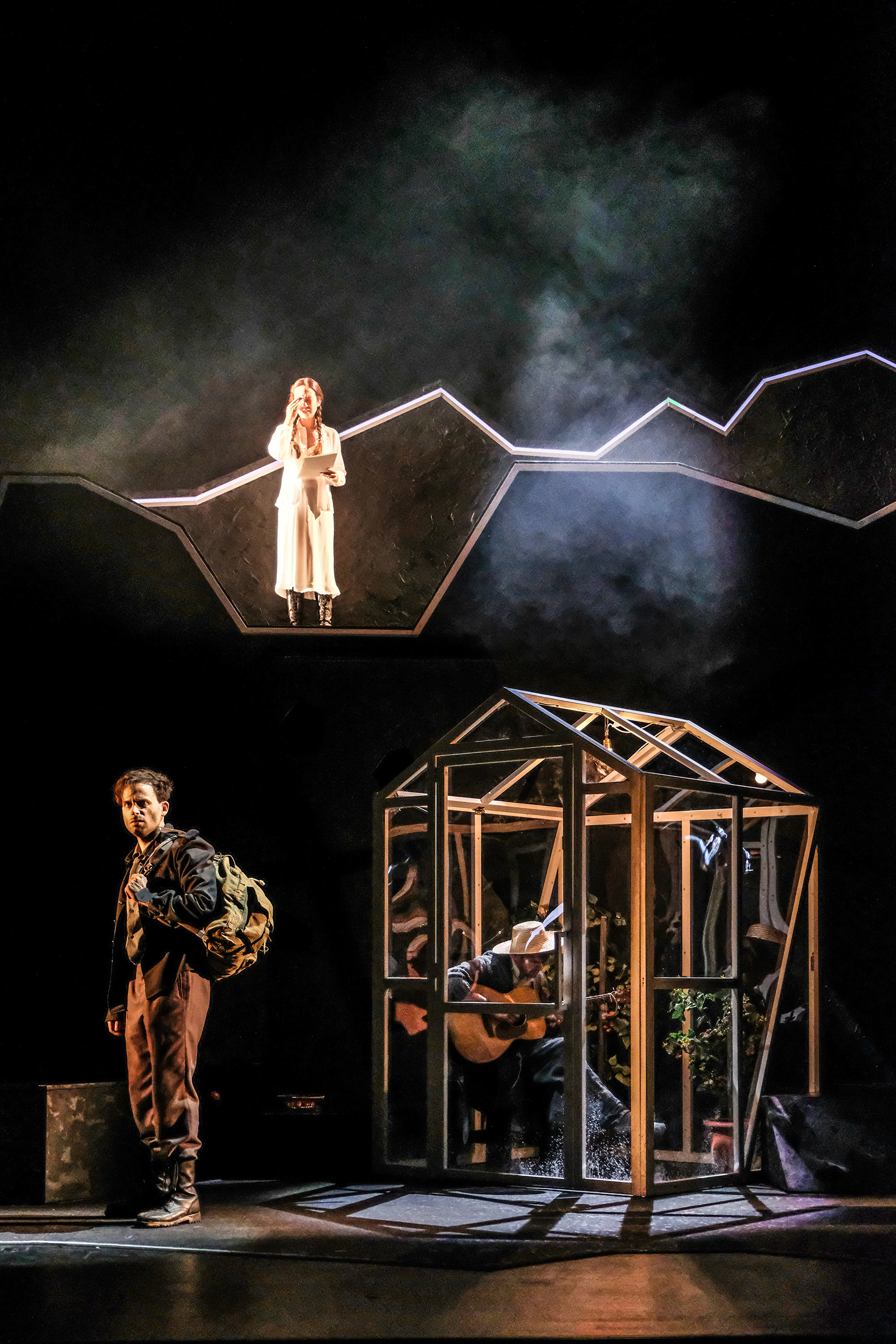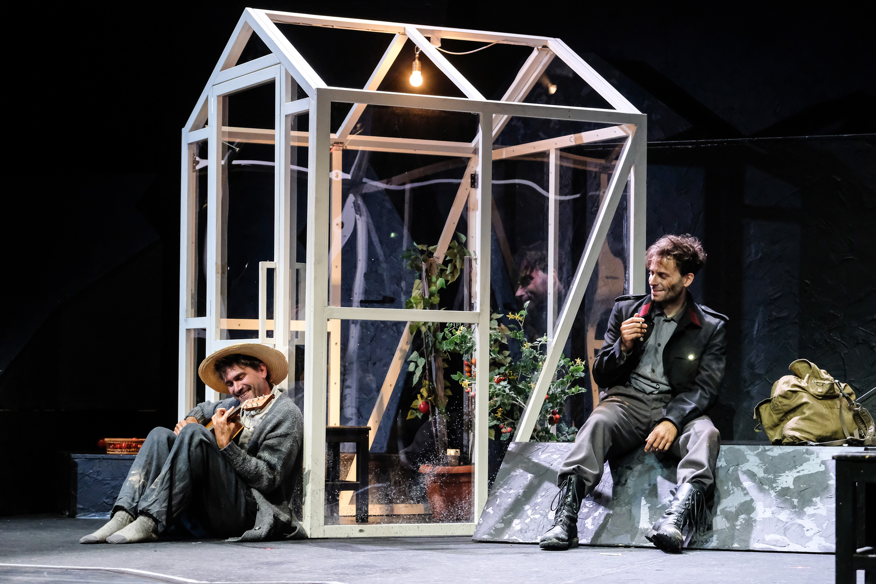 2018 erschien Arno Geigers gefeierter Roman UNTER DER DRACHENWAND. Anke Kell hat nun den Stoff für die Bühne adaptiert (7 D | 6 H, Mehrfachbes. mögl.). In der Regie von Beka Savic wurde die Bearbeitung in Hildesheim zur Premiere gebracht. Eindrucksvoll fanden dabei die Situationen rund um den Kriegsversehrten Veit, der während des zweiten Weltkrieges nach Mondsee zur Genesung geschickt wird, ihren Weg auf die Bühne.